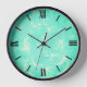 Softly swirled marble pattern in shades of pale aqua / robin's egg blue with white, Roman numerals, and black frame