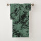 Marble texture pattern in black and green bath towel set