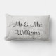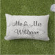 This outdoor pillow has an illustrated white carrara marble background and says, "Mr and Mrs" with the new married last name on the front, and "We Did" with the wedding date of the newly married couple on the back, making it a great accent pillow for an outdoor wedding sweetheart table, and the newlyweds' patio, or deck.