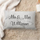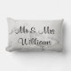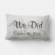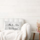 This throw pillow has an illustrated white carrara marble background and says, "Mr and Mrs" with the new married last name on the front, and "We Did" with the wedding date of the newly married couple on the back, making it a great accent pillow for the wedding sweetheart table, and the newlyweds' home after the wedding.