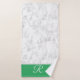 Marble White and Green Monogram Initial Bath Towel Set