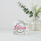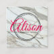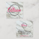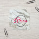 Personal trainer business card in white marble background and fuchsia pink round name logo. Personalised business card in modern,natural stone, elegant design.