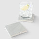 The coasters are gorgeous, a quality feel and heavy weight. They look like a precious archeological find. A rustic stone juxtaposed with a modern floral black and white print. I like the way the print goes slightly imperfect on the cut stone edges giving them a kind-of natural beauty.