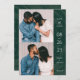 This modern save the date card features 2 photo frames, and a simple band filled with a chic marble pattern.
