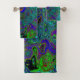 Marbled Blue and Aquamarine Abstract Retro Swirl Bath Towel Set