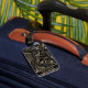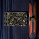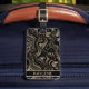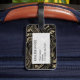 Features an abstract marbled gold design on a black background. Personalise with a name on the front, and a name and address on the back.