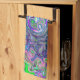 Marbled Lime Green and Purple Abstract Retro Swirl Tea Towel