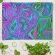 Marbled Magenta and Lime Green Groovy Abstract Art Tea Towel