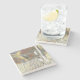 The coasters are gorgeous, a quality feel and heavy weight. They look like a precious archeological find. A rustic stone juxtaposed with a modern floral black and white print. I like the way the print goes slightly imperfect on the cut stone edges giving them a kind-of natural beauty.