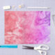 Bright poured paint style abstract pattern in shades of red, pink and purple.