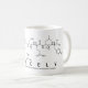 Marcely spelled out in amino acids as M A R C E L Y (Methionine Alanine Arginine Cysteine Glutamic acid Leucine Tyrosine) on a mug for the scientist in you.