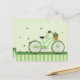 With a basket filled with shamrocks, all done up in green, this fresh bicycle design is a fun way to send a quick hello.