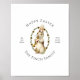 A festive Easter design with a personalised greeting alongside vintage artwork of spring flowers and a bunny rabbit playing an instrument.