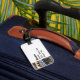 I was happy with the acrylic tag but it came with a thin leather strap to attach the tag to luggage (like a cat collar). I replaced the strap with a metal ring off of a key ring as the leather strap would come undone or break easily as luggage is sometimes handled without much care by airlines. Printing is great. Colours and positioning of the design I put on the tag were perfect. Very pleased.