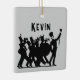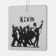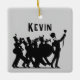 Square Christmas tree ornament for the member of a marching band. Add a name to the front, over a silhouette of a marching band. The back is black with grey, distressed text. Perfect for a teenage son or daughter.