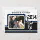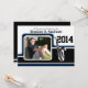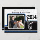 Varsity Stripe with Trumpet Graduation party invitation with photo accented in blue. Customise for any college, university or high school graduation. Change text to fit your needs. Add information to back of invitation too.