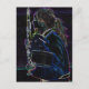 Photograph altered to a glowing outline abstract of a uniformed female marching band member in profile, holding her feathered hat in one hand and a clarinet in the other.