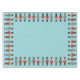 A set of three different colored nutcrackers marching around the margins of this sage tablecloth.