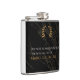 The flask itself is fine. It’s a cheap flask, obviously bought in bulk, however am prepared to overlook that. Given that it is a personalized item, I would have liked to have seen gift boxing instead of the generic packaging. Terrible printing, and/or quality. It’s a cheap, tacky vinyl. It is not cut straight and is also applied in a way that it is overhanging the bottom, causing the glue to catch on items and it will eventually roll and tear, damaging the wrap.