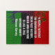 Motivational BLACK HISTORY MONTH Jigsaw Puzzle, showing a part image of a tree silhouette against the colours of the Pan African flag in the background, and the famous TREE WITHOUT ROOTS quote by Marcus Garvey in bold white typography. Matching gifts are available.