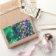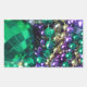 Photograph of Mardi Gras beads featuring a large green bead. The bead colours feature the gold, purple, and green colours of Mardi Gras celebration. Beads are also known as "throws" since they are thrown by krewe members to those watching the parade floats. This image can be customised to add your own text.
