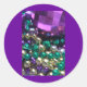 Photograph of Mardi Gras beads featuring a large purple bead. The bead colours feature the gold, purple, and green colours of Mardi Gras celebration. Beads are also known as "throws" since they are thrown by krew members to those watching the parade floats. This image can be customised to add your own text.