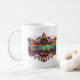 This ceramic coffee mug is shown with Mardi Gras image prints.