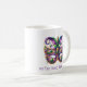 This ceramic coffee mug is shown with Mardi Gras images, Text of "Let the good times roll' is beneath the prints.