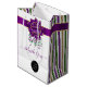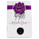 This Mardi Gras gift bag features purple and gold bow with purple, green and gold ribbons. Custom text and your logo to personalise. Sides feature purple, green and gold glitter stripes.