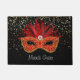 This doormat is shown in black with a gold stars print with a festive Mardi Gras Carnival Mask print.