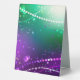 Bright purple and green background with shiny confetti. Festival Mardi Gras.