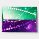 Bright purple and green background with shiny confetti. Festival Mardi Gras.