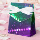 Bright purple and green background with shiny confetti. Festival Mardi Gras.