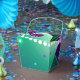 Bright purple and green background with shiny confetti. Festival Mardi Gras.