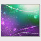 Bright purple and green background with shiny confetti. Festival Mardi Gras.