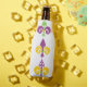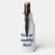 This bottle cooler has a Mardi Gras design of fleur de lis lined across the design with different design in them.