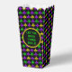 Celebrate the spirit of Mardi Gras with our Mardi Gras Fleur de Lis collection featuring the iconic Fleur de Lis pattern in vibrant colours of purple, green, and gold. The Fleur de Lis pattern embodies the timeless beauty and regal charm associated with French heritage and the celebration of Mardi Gras. The collection showcases the traditional Mardi Gras palette of purple, green, and gold, symbolising justice, faith, and power. These bold and lively colours are sure to make a statement. Personalise your piece with custom text or leave as is. This little favour box works great as a popcorn holder or favour box!