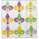 This shower curtain has a Mardi Gras design of fleur de lis lined across the design with different design in them.