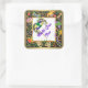 Square sticker to match our "Mardi Gras Fun" invitation with an image of a black frame adorned with colourful feathered and sequined masks, jester hats, a feathered hat, balloons, beads, coins, stars, and gold ribbons. Optional text. See matching invitation, envelope, gift tag and label. See the entire Mardi Gras Sticker collection in the INVITES | Stickers & Labels section.