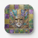 Mardi Gras Gold & Ceramic Colourful Feather Mask Paper Plate