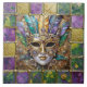 Mardi Gras Gold & Ceramic Colourful Feather Mask Tile