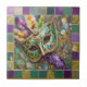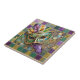 Mardi Gras Green and Gold Colourful Feathers Mask Ceramic Tile