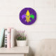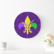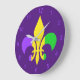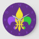 Mardi Gras Green Yellow Purple Fleur-de-Lis Large Clock