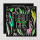 Mardi Gras Hand Drawn Botanical Pink Black Square Invitation