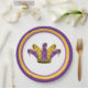 Mardi Gras Jester Hat with harlequin pattern in purple and gold. Plate also has purple and goad border.