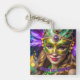 This acrylic keychain is shown with a festive Mardi Gras women mask print.