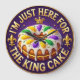 Celebrate the spirit of carnival season with this vibrant Mardi Gras wall clock! The design features a delicious 3D-style King Cake dripping with white icing and traditional purple, green, and gold sugar sprinkles. Centered on a royal purple background, bold golden text proudly proclaims, "I AM JUST HERE FOR THE KING CAKE." Elegant fleur-de-lis symbols and a golden crown accent the face, adding a touch of New Orleans flair to your decor. This functional timepiece is a cheerful addition to kitchens, dining rooms, or party spaces during the Fat Tuesday festivities. Available in 12 stunning frame colors to suit your home aesthetic, this clock is built to last and comes with a guarantee for life. You can even customize the text to feature your own name or a unique celebration message! It is the perfect chic self-gift for anyone who loves the flavor and fun of the bayou.