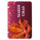 This flexible magnet is shown in a festive Mardi Gras mask print.