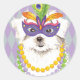 Cute Maltese puppy, dressed in festive feather mask and beads, ready for fun on Mardi Gras or at any other time. Great gift for yourself and your Maltese-loving family and friends.