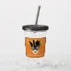 This festive Mardi Gras acrylic plastic tumbler glass has an orange on clear background and a black and gold-coloured carnival mask over petite stars.